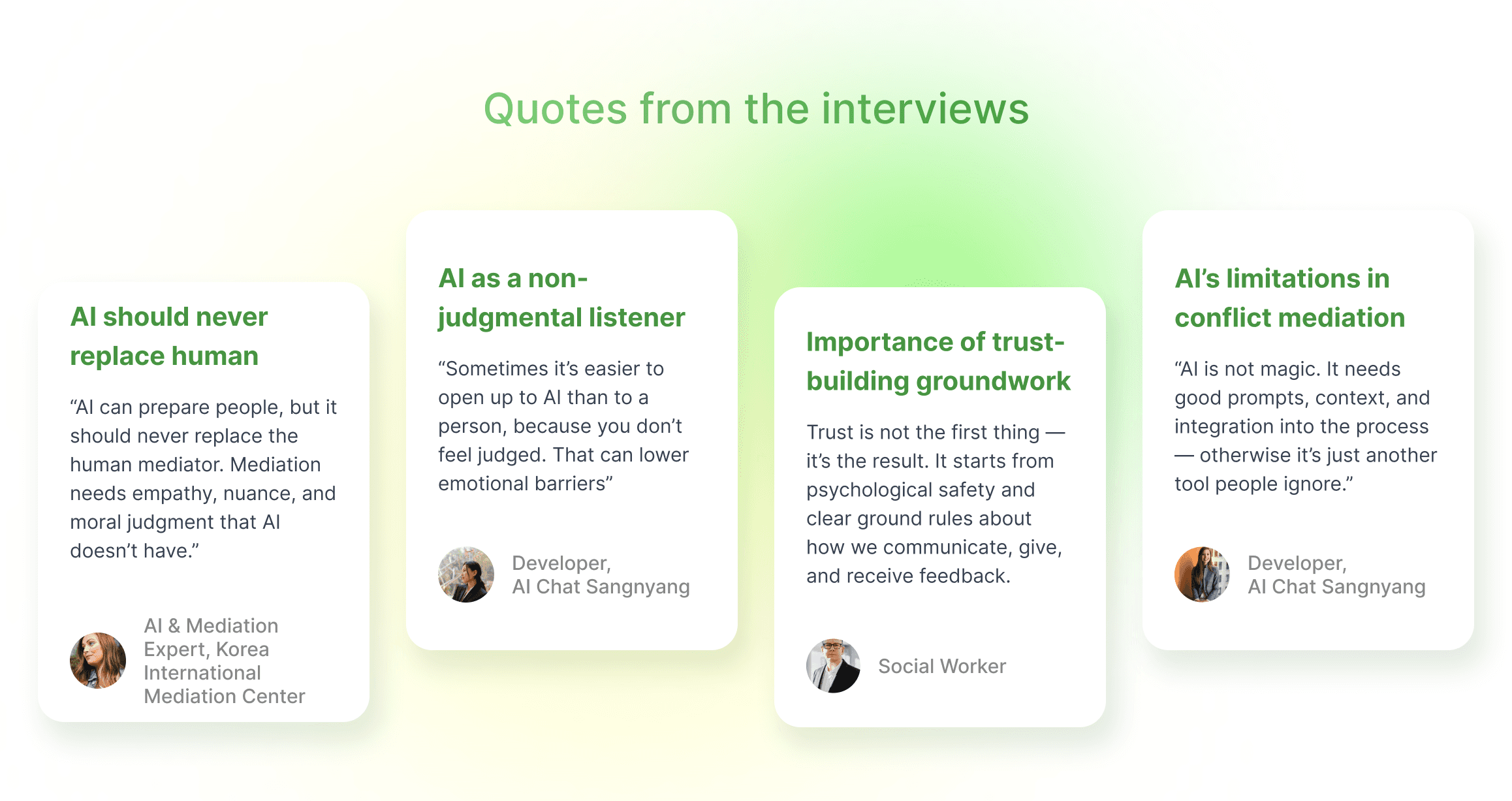 Primary Research: 11 expert interviews (mediators, educators, AI developers, social workers) across Finland & Korea.